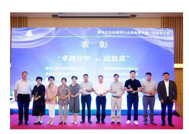 #青岛市纺织服装行业协会#应时代发展成立,20多年来在服务政府、行业、企业方面尽自身最大努力履行了相关的职责。作为感知行业发展最近的组织,20年道路崎岖,充满挑战,20年兢兢业业,不负韶华。20年间,如终有一批会员企业陪伴协会共同成长。为向他们坚守执着的工作精神致敬,表彰其在行业发展中做出的突出贡献,大会决定对青岛三美士西装有限公司、青岛庄正职业服装有限公司、青岛环球服装股份有限公司、青岛鑫联服饰有限公司、青岛红雨伞时装有限公司、青岛昊泽服饰有限公司、巴龙国际集团、青岛海丽花边织带有限公司、青岛即发集团股份有限公司、青岛雪达集团有限公司10家企业进行表彰。