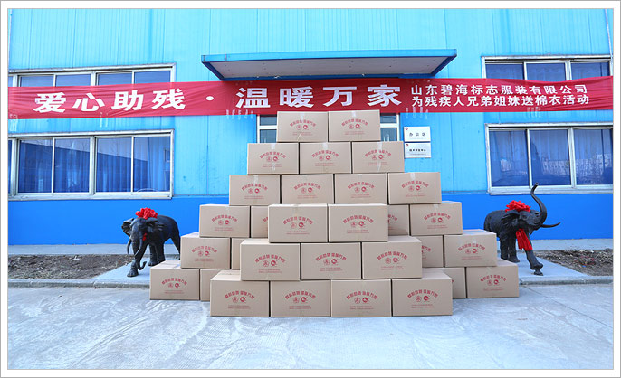 公司的发展离不开社会各界的帮助与支持,因此我公司近几年来一直致力于公益事业。12月22日,公司为残疾人兄弟姐妹送棉衣活动,进行得如火如荼,在公司总经理王广的带领下,36箱棉衣送往指定地点,残疾人兄弟姐妹激动不已,“在这个寒冬,是碧海让我们感到了温暖,”一位拿着棉衣的残疾兄弟说。授人玫瑰,手留余香;爱心奉献,收获希望。在繁华的都市,在喧嚣的街道,在温暖的家里,在狂欢的节日,我们都记住了自己的快乐。